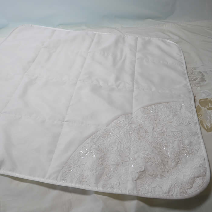 おくるみはレースの配置を扇形の切り替えでシンプル過ぎないエレガントなおくるみです。