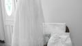 コードレースが美しいウェディングドレスからベビードレスセットとおくるみ、スタイをお作りしました。