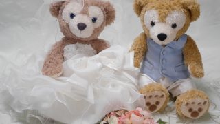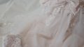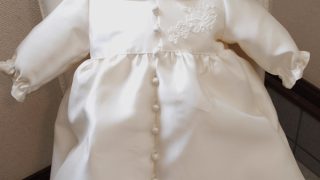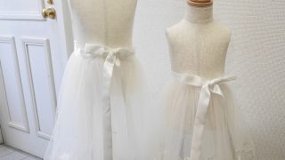ドレスはアシメトリーの大きなフリルが印象的なデザインです。