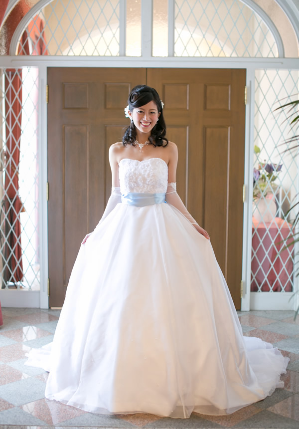爽やかなブルーのサッシュベルトとお揃いの爽やかブルーの蝶ネクタイ。とても素敵に仕上がりました♪