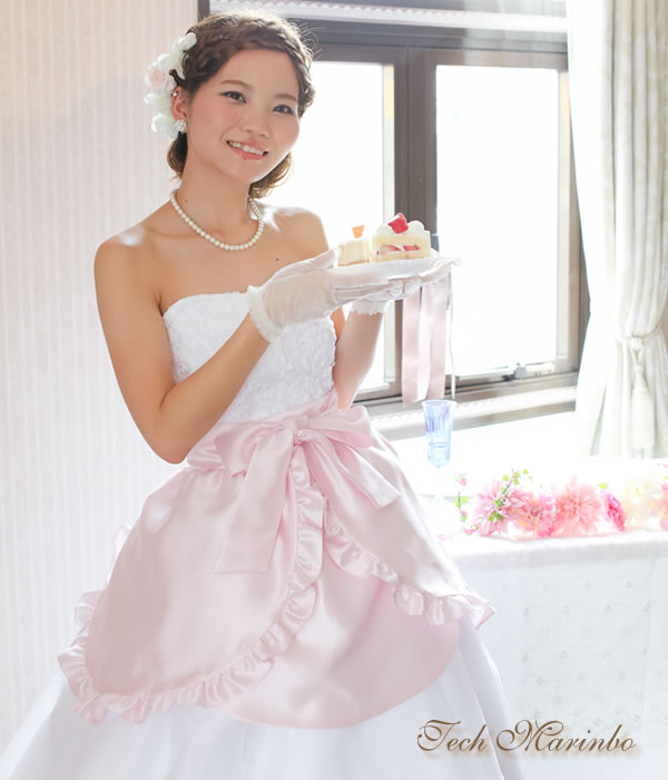 ご披露宴の時、ファーストバイトやデザートビュッフェで花嫁様がウェディングドレスの上からお召しになるエプロンの事です。