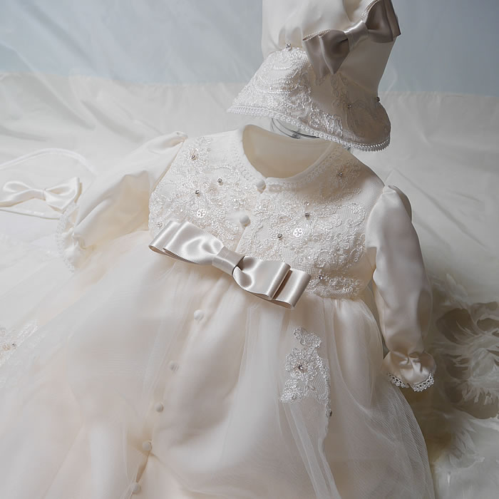 ウェディングドレスからベビードレスにリメイクする場合は、ウェディングドレスと言う生地の特性上、普段着のベビードレスよりもお宮参りなどのセレモニー用としてお作りする場合がほとんどです。