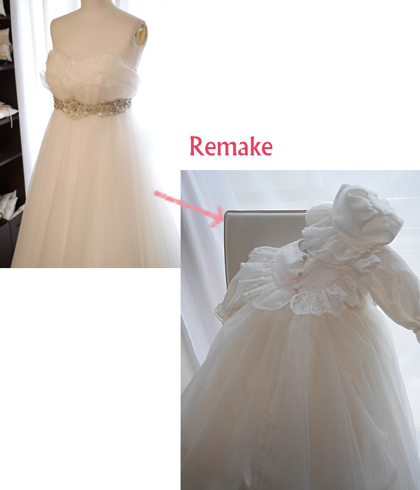 ママのドレスの胸元のレースを取り入れたデザイン。