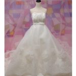 ウェディングドレスのフリルとレースモチーフをあしらった