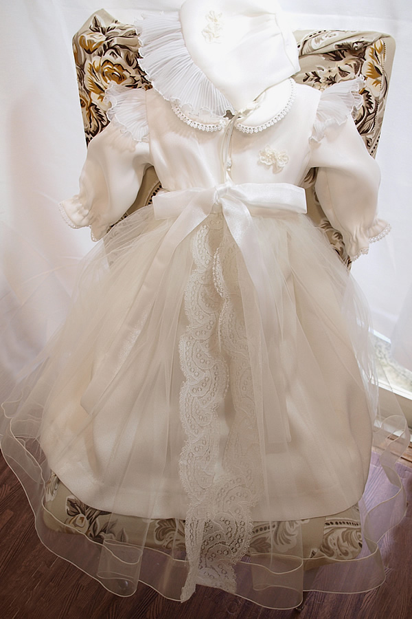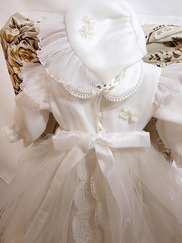生まれてくる我が子へとリメイクしたベビードレスです。
