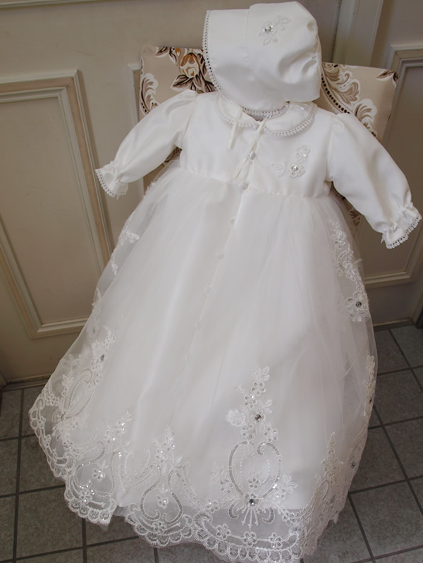 ベビー・子供・出産準備品ドレスのオーガンジーに施されていたレース刺しゅうを