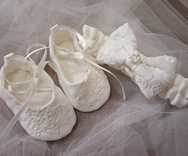 お揃いでベビーシューズとベビーリボンもお作りしました。