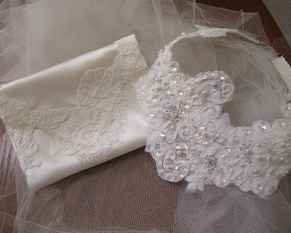 ベビーだけなくご自身用にはハンカチとレースのチョーカーで想い出のウェディングドレスをカタチに残されました。