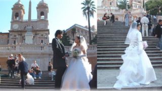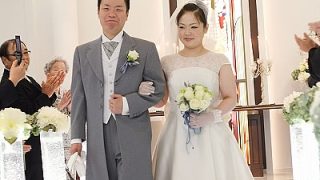 元ドレスは織り柄の素敵なマーメイドドレス。