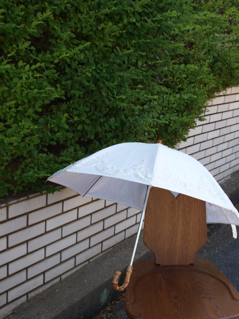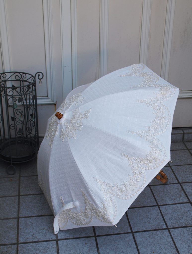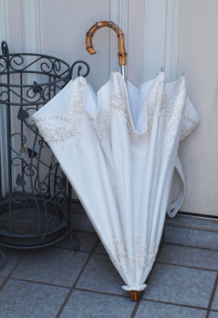 ドレスの生地にレースをあしらった世界でただ一つのオリジナル日傘です。