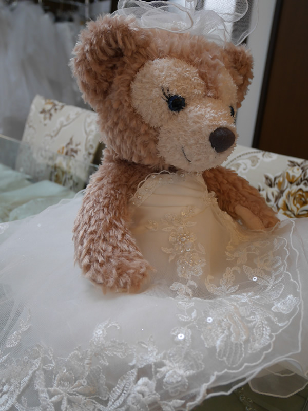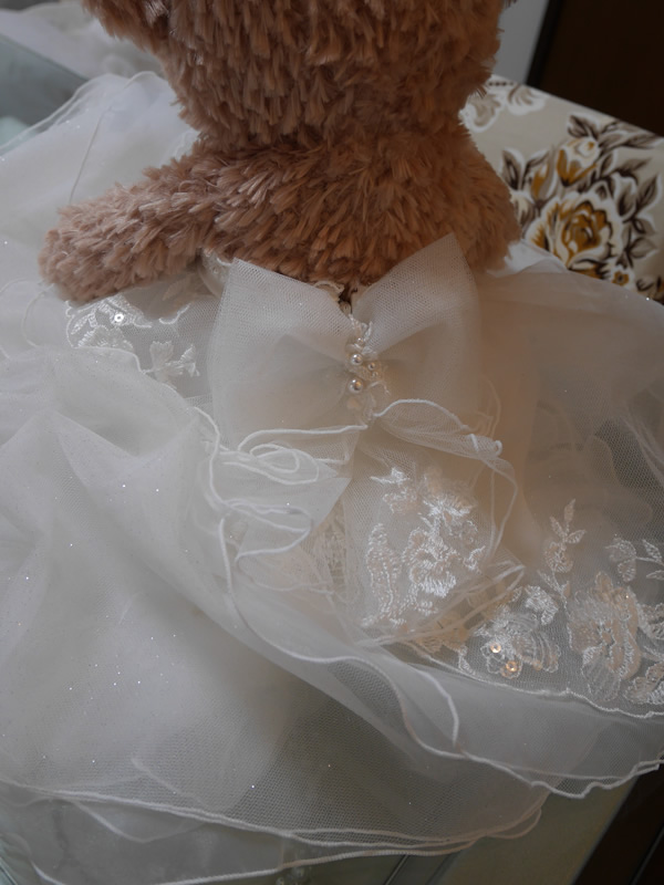 ウェディングドレスをデザインそのままにシェリーメイに合わせてリメイクしました。