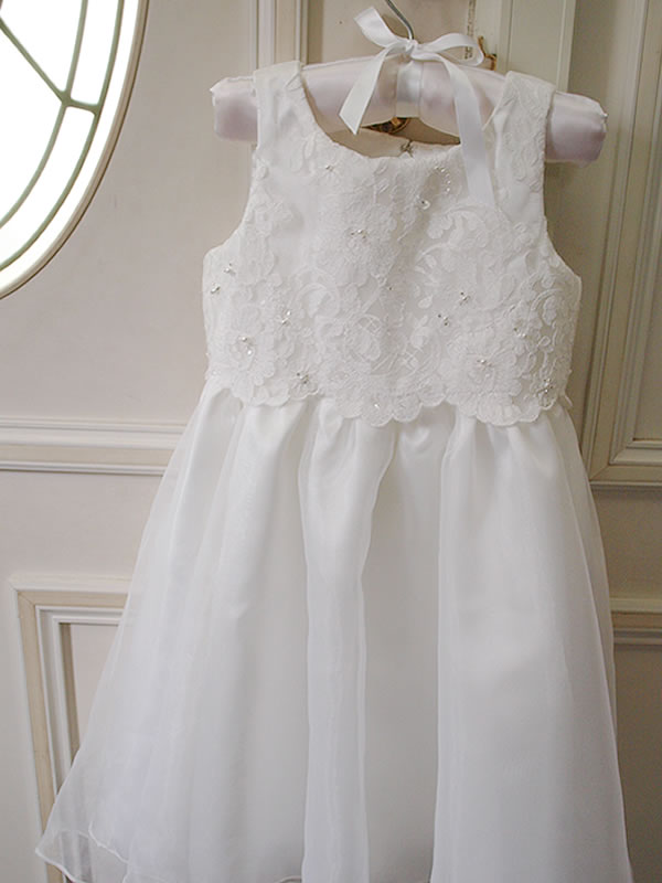 ベビー・子供・出産準備品ウェディングドレスをお子様用のドレスにリメイクしました。