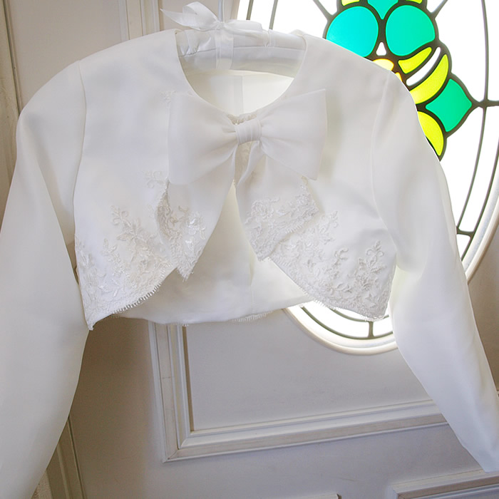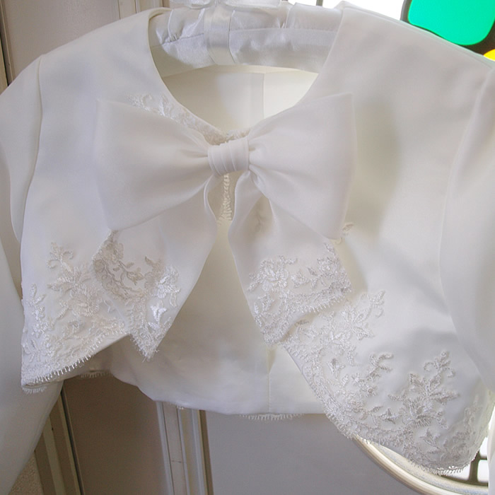 ウェディングドレスをお子様のボレロにリメイクしました。