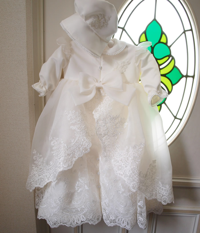 お袖もフリルをあしらったお姫様ベビードレスです。