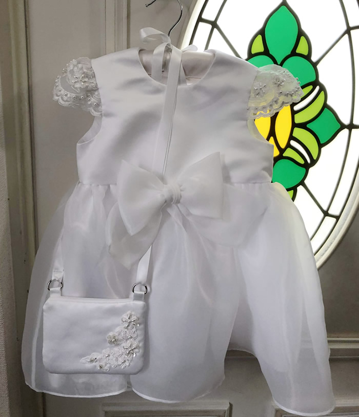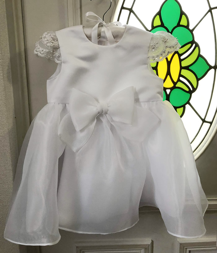 ウェディングドレスをお子様ドレスにリメイクしました。