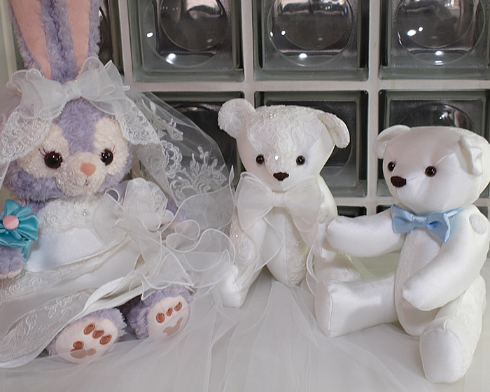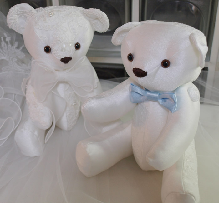 余ったドレス生地とレースでペアのテディベアもお作りしています。