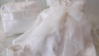 ご自身でお持ちのテディベアには元ドレスのデザインに似せたドレス。