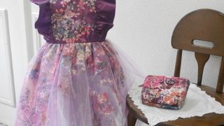 ピンクのふわふわドレスからたくさんの小物をリメイクしました。