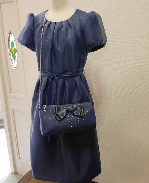 バッグ・ポーチウェディングドレスを染色してフォーマルドレスとバッグをお作りしました。