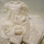 ハンカチはドレスのサテンを使った、シルバー糸のお名前刺繍入りです。