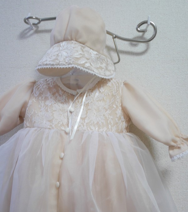 クラシカルなレースも重ねて上品なベビーセレモニードレスに生まれ変わりました。