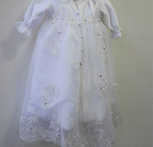 ベビー・子供・出産準備品ウェディングドレスからベビードレスをリメイクしました。