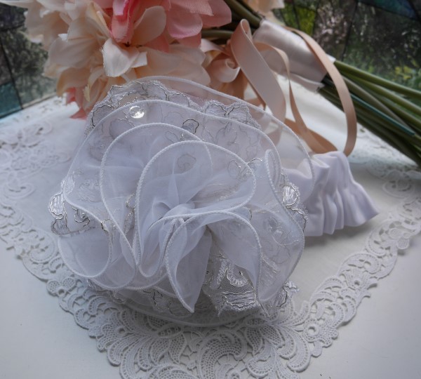 少し大きめのコサージュが付いたヘッドリボンも華やかです。