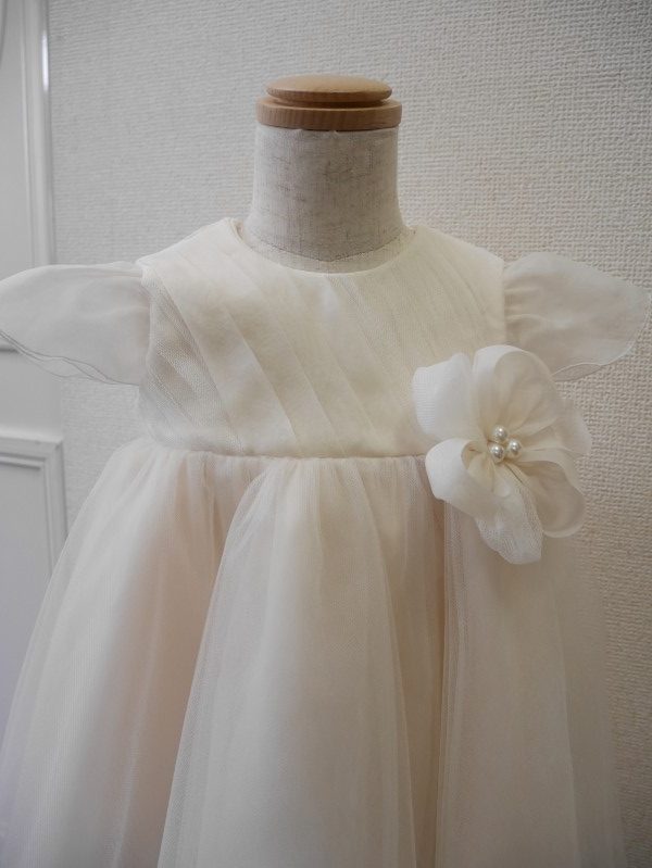 やわらかい色合いのオーガンジーが重なった可愛いキッズドレスです。