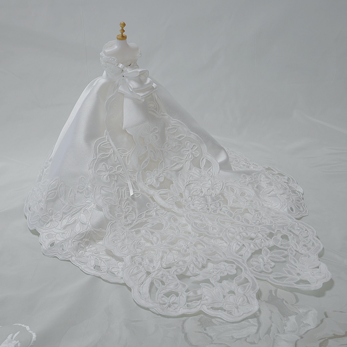 ウエディングドレスを1/6サイズのミニチュアドレスとテディベア、