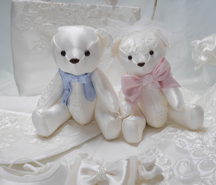 元ドレスのミカドサテンやレースのカットワークをいかした