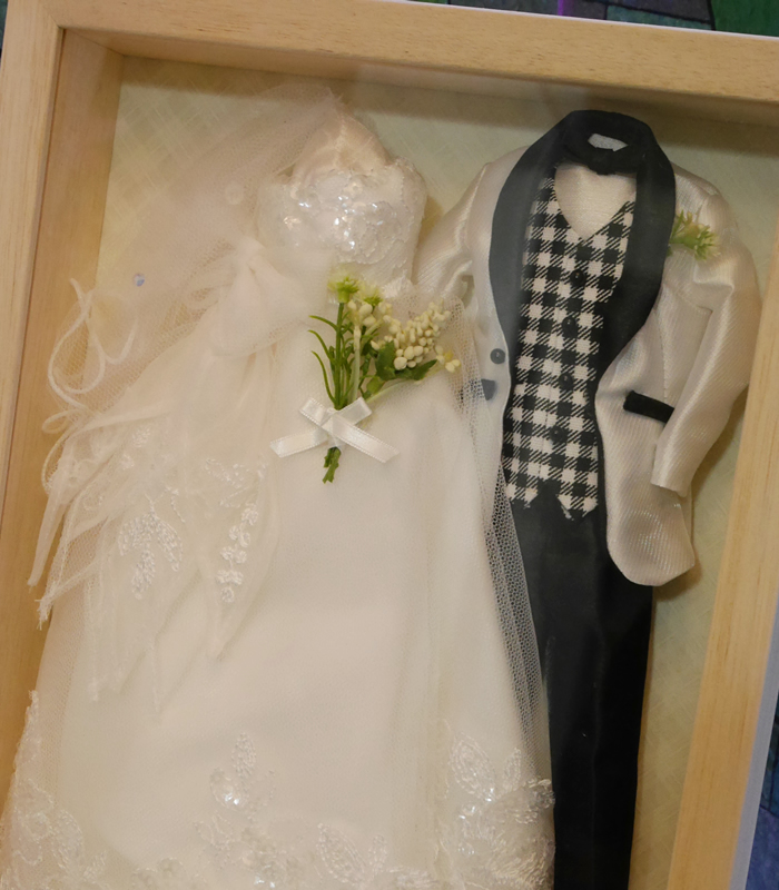 ウェディングドレスをフレーム型のミニチュアドレスにリメイクしました。