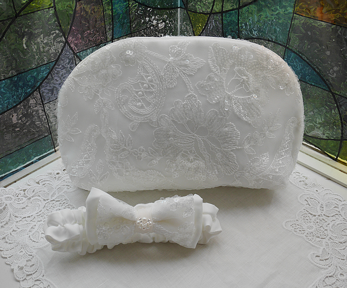 シンプルなポーチとヘッドアクセサリーもレースを使ってお作りしました。