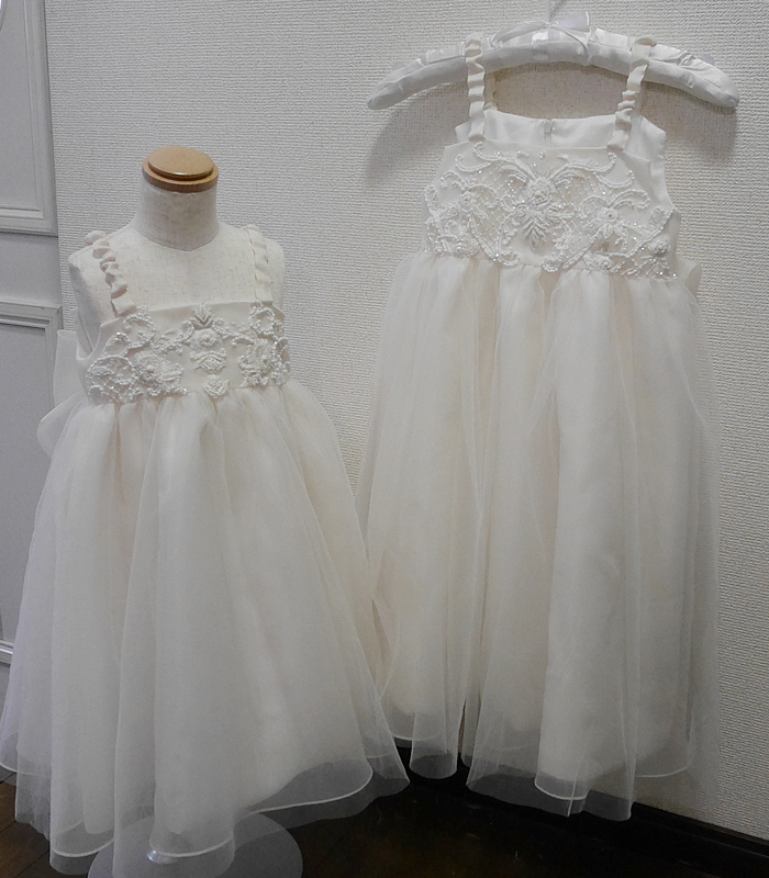 ウェディングドレスを姉妹のお子様のリゾートドレスにリメイクしました。