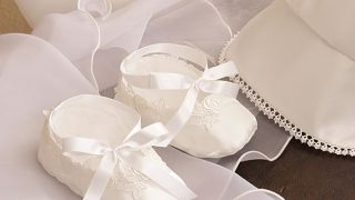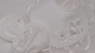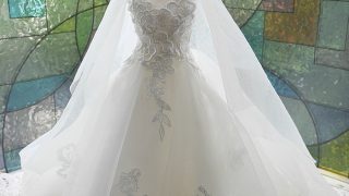 胸元には元ドレスのレースビジューをアレンジ。とてもエレガントです。