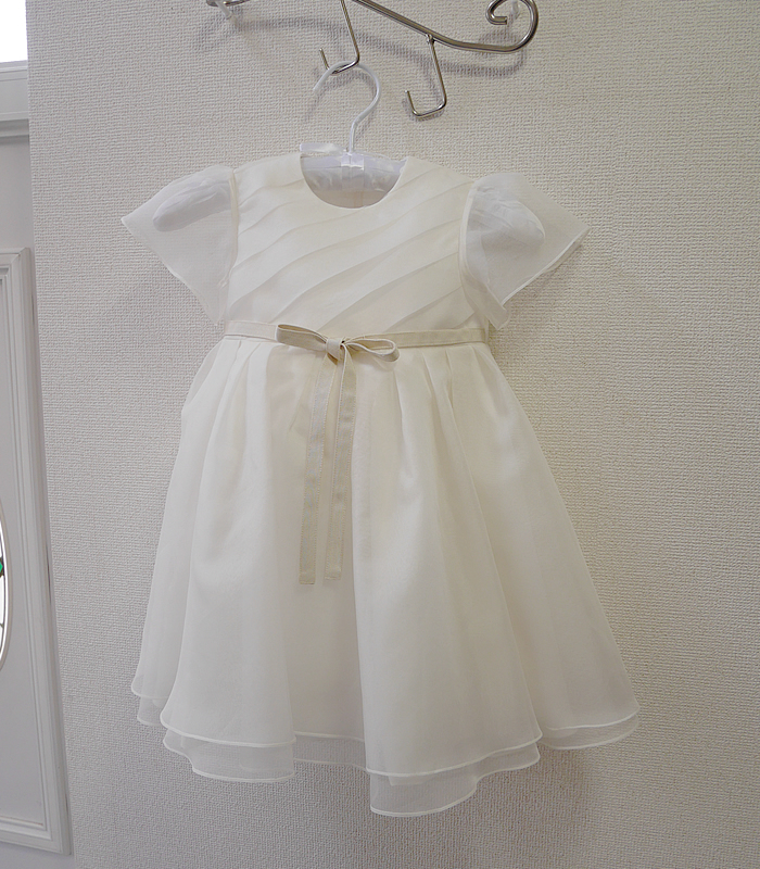 お子様ドレスは元ドレスの胸元タッキングのデザインを取り入れ