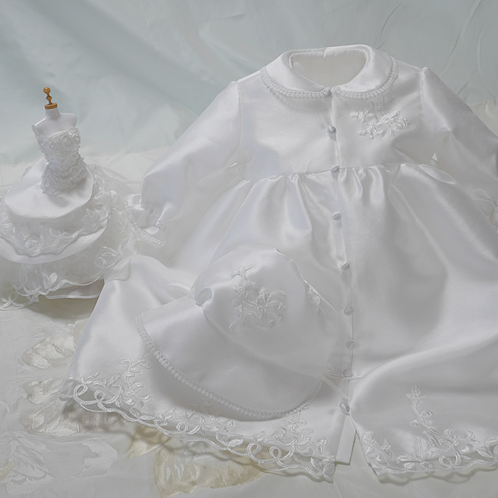 ドレスのレースを裾にあしらいました。帽子もセットです。