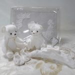 元ドレスの胸元のレースとビジューをベビーのヨークと帽子にアレンジしました。