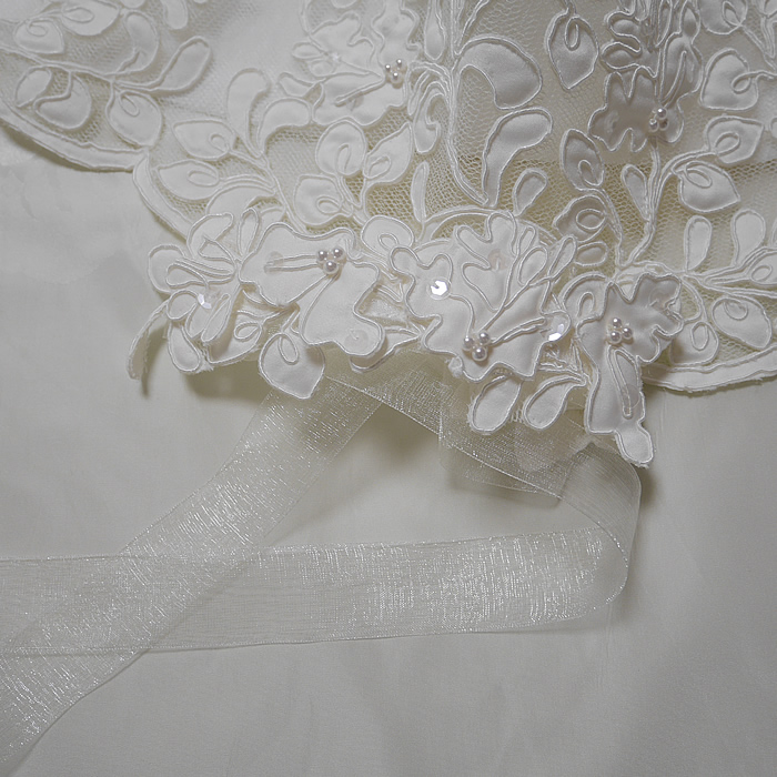 ヘッドドレスはレースをつなぎ合わせてパールをあしらった上品なデザインです。