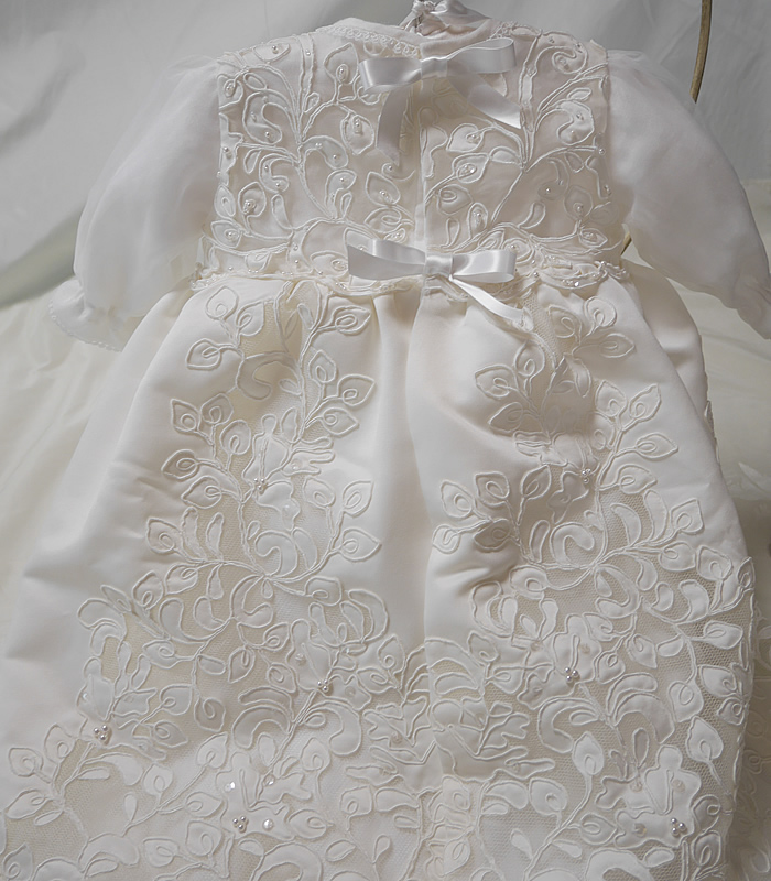 ゴージャスなカットワーク刺しゅうがポイントのベビードレスですので