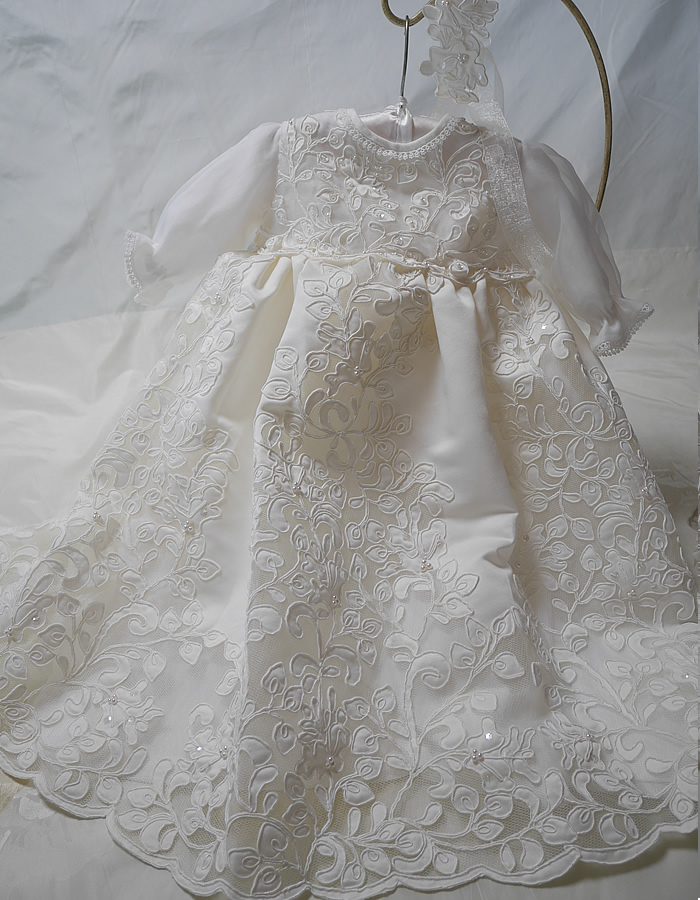 ゴージャスなカットワーク刺しゅうがポイントのベビードレスですので