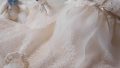 到着した時点で想像以上に素敵な作りでしたが、実際に着せてみるとより素敵になり、自分の着たドレスを自分の子どもが着ていることに嬉しさがあふれました。お宮参りなどもこれからですので、節目のときに着せていきたいと思います。