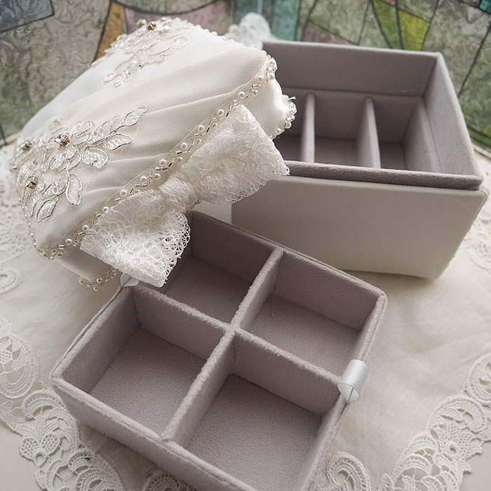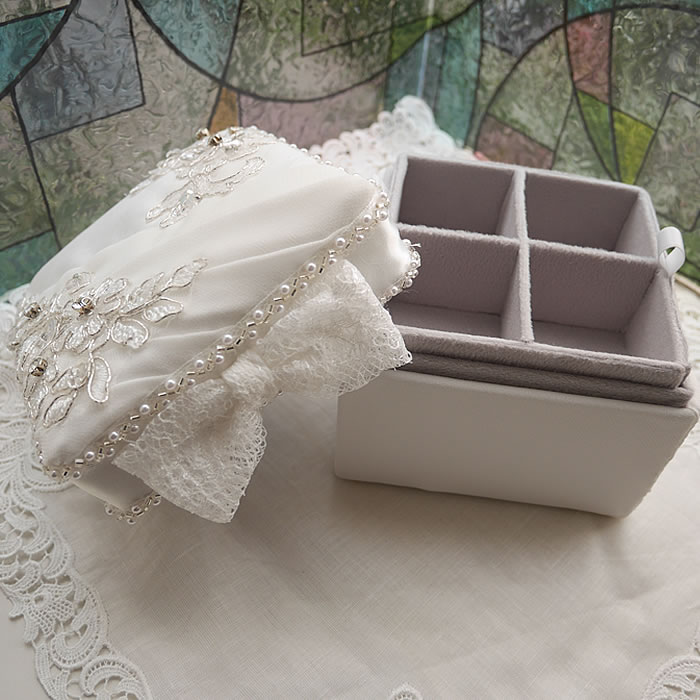 ウェディングドレスからアクセサリーボックスにリメイクしました。