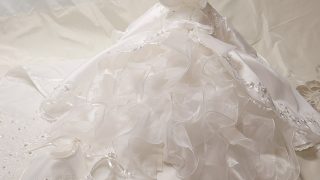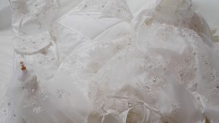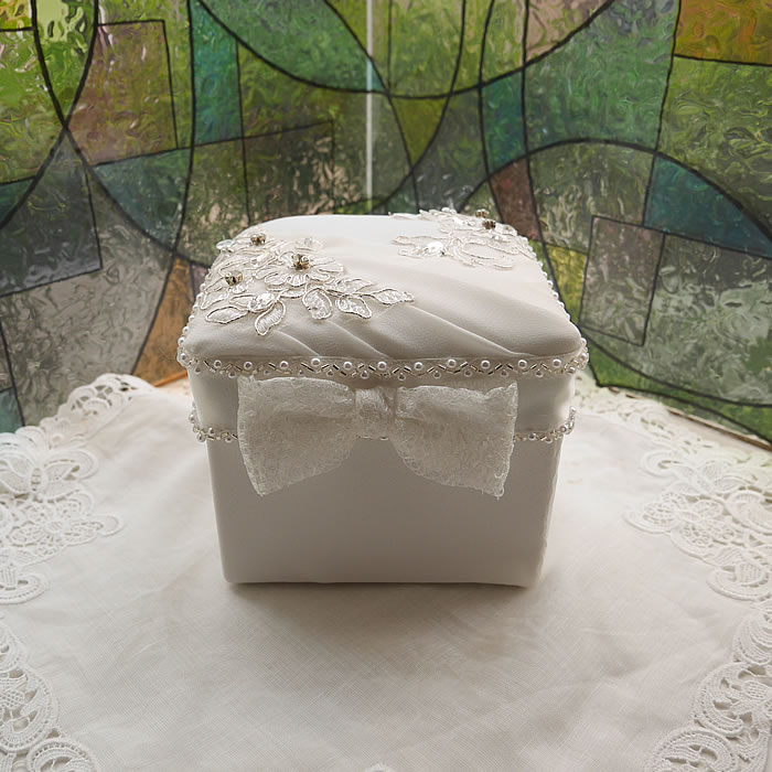 ウェディングドレスからアクセサリーボックスにリメイクしました。