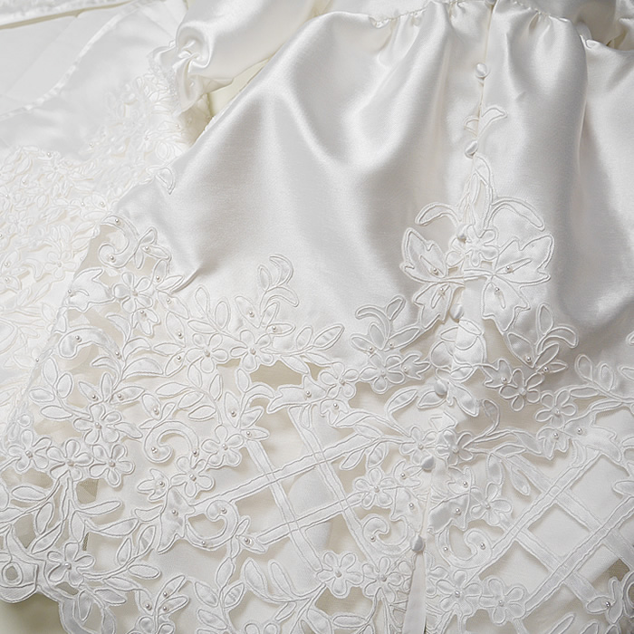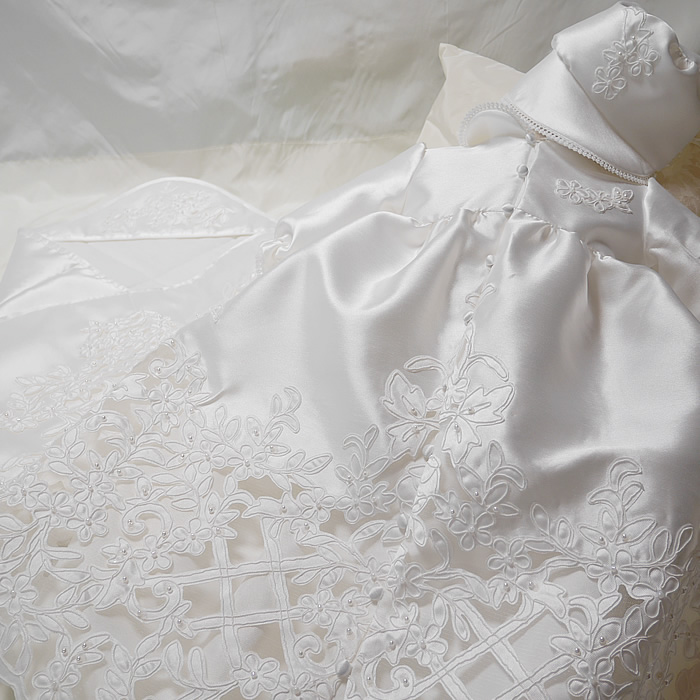 エレガントでセレモニーにぴったりのおくるみに仕上がりました。