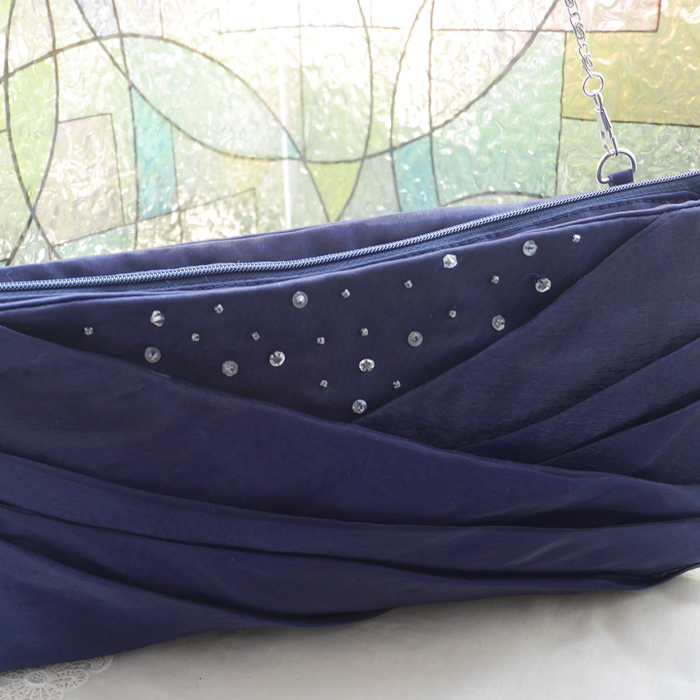 ドレスのサテン地とオーガンジーを濃紺に染色し、