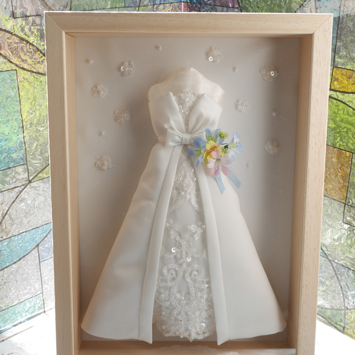 ウェディングドレスから、フォトフレーム型のミニチュアドレスと