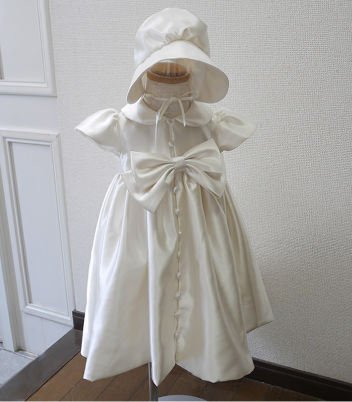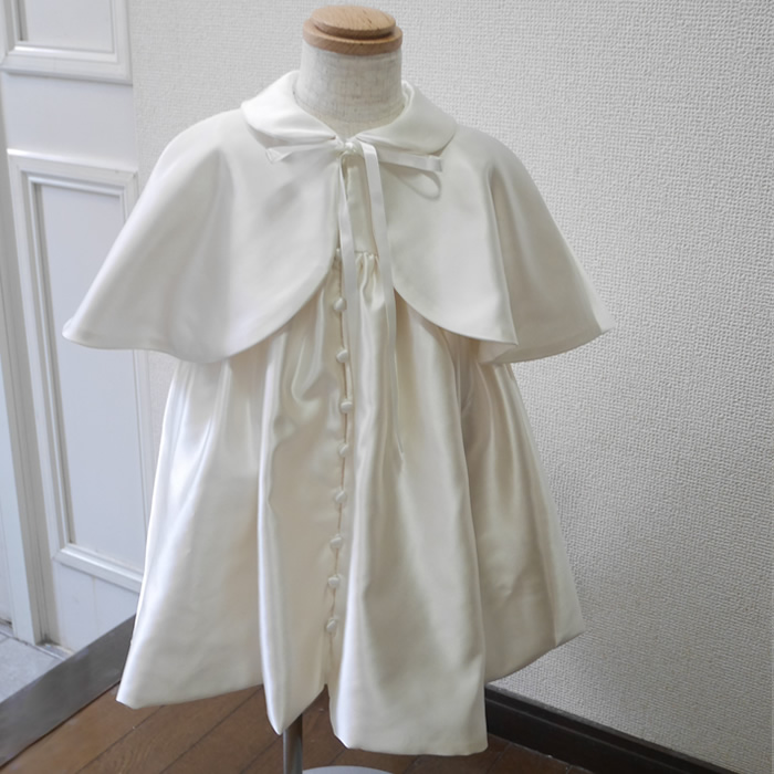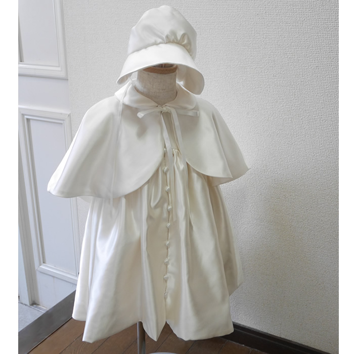 ウェディングドレスからベビードレスと帽子のセットとボレロをお作りしました。