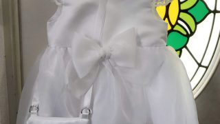 ウェディングドレスからベビードレスと1/6サイズのミニチュアドレスにリメイクしました。