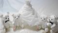 おくるみは大柄のレースを大胆にあしらい華やかに。