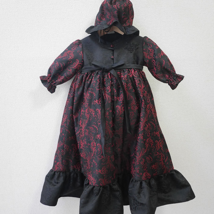 ベビードレスと小物も柄生地とレースをアクセントにお作りしました。